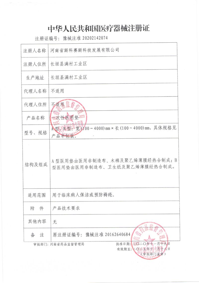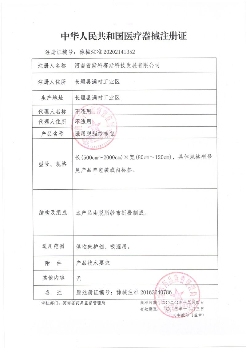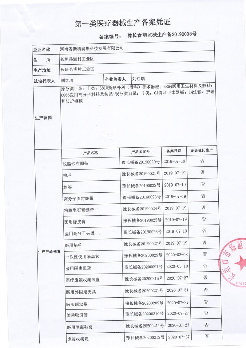 河南省斯科賽斯科技發(fā)展有限公司創(chuàng)建于 2011 年,位于“中國醫(yī)療耗材之都”- 河南省長(zhǎng)垣縣,西臨 308 省道,南靠新菏鐵路,北依長(zhǎng)濟(jì)高速,交通便捷,經(jīng)濟(jì)發(fā)達(dá),環(huán)境優(yōu)美。斯科賽斯積極進(jìn)入醫(yī)療健康和服務(wù)領(lǐng)域,秉承為用戶創(chuàng)造價(jià)值的理念,專注于醫(yī)用耗材解決方案的研發(fā)和運(yùn)營,并為用戶提供完善的產(chǎn)品解決方案;  斯科賽斯主要生產(chǎn)醫(yī)用麻醉系列、醫(yī)用高分子系列、醫(yī)用敷料包系列、醫(yī)用無紡布系列、醫(yī)用防護(hù)系列、醫(yī)用脫脂棉系列、生物材料制品類等七大類、100 多個(gè)品種、400 多個(gè)規(guī)格的產(chǎn)品。公司占地面積約 30000 平方米,建筑面積20000 平方米,擁有 10 萬級(jí)的凈化車間總面積 10000 平方米。擁有國際先進(jìn)水平的生產(chǎn)設(shè)備和檢測(cè)儀器,技術(shù)裝備精良,檢測(cè)手段完善,為醫(yī)療行業(yè)的不斷發(fā)展進(jìn)步提供保障。公司順利通過 ISO9001、ISO13485 質(zhì)量管理體系認(rèn)證。  斯科賽斯堅(jiān)持研發(fā)高科技新產(chǎn)品,力爭(zhēng)在醫(yī)療器械關(guān)鍵領(lǐng)域取得技術(shù)和研發(fā)的重大突破;立足國內(nèi)和國際兩個(gè)市場(chǎng),逐步實(shí)現(xiàn)管理理念、經(jīng)營機(jī)制、人力資源、技術(shù)、產(chǎn)品、市場(chǎng)等全方位對(duì)接,提高企業(yè)的核心競(jìng)爭(zhēng)力;過去的歲月里,斯科賽斯砥礪前行,誠信務(wù)實(shí),銳意進(jìn)取,不斷創(chuàng)新,用自己的睿智和辛勞,以富有責(zé)任感的使命,在探索中追求,在追求中超越,致力于成為值得信賴的醫(yī)療用品生產(chǎn)企業(yè)!在未來的日子里,斯科賽斯將一如既往豪情滿懷,信心百倍,攜手并肩,執(zhí)著追求,向更高的的目標(biāo)前進(jìn),鑄造新的輝煌!